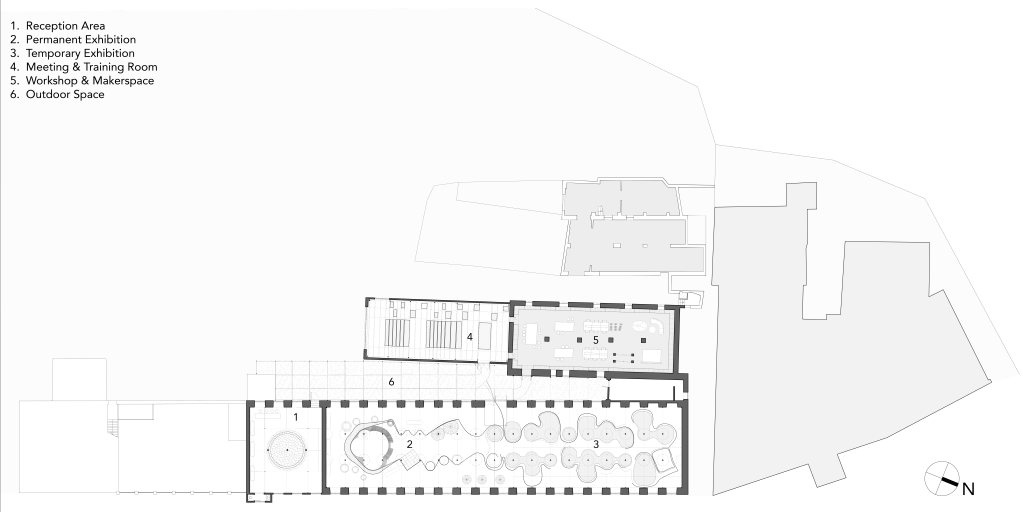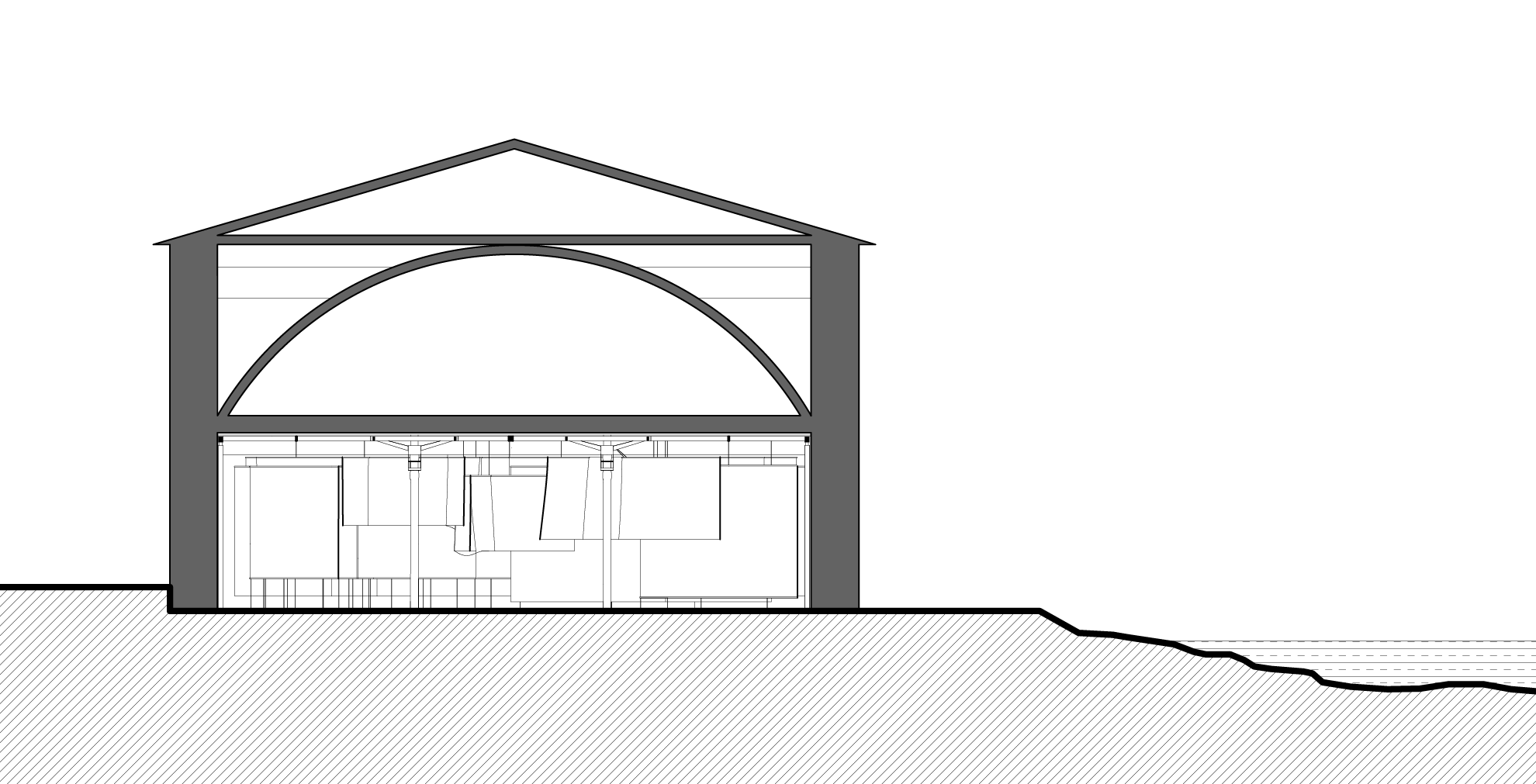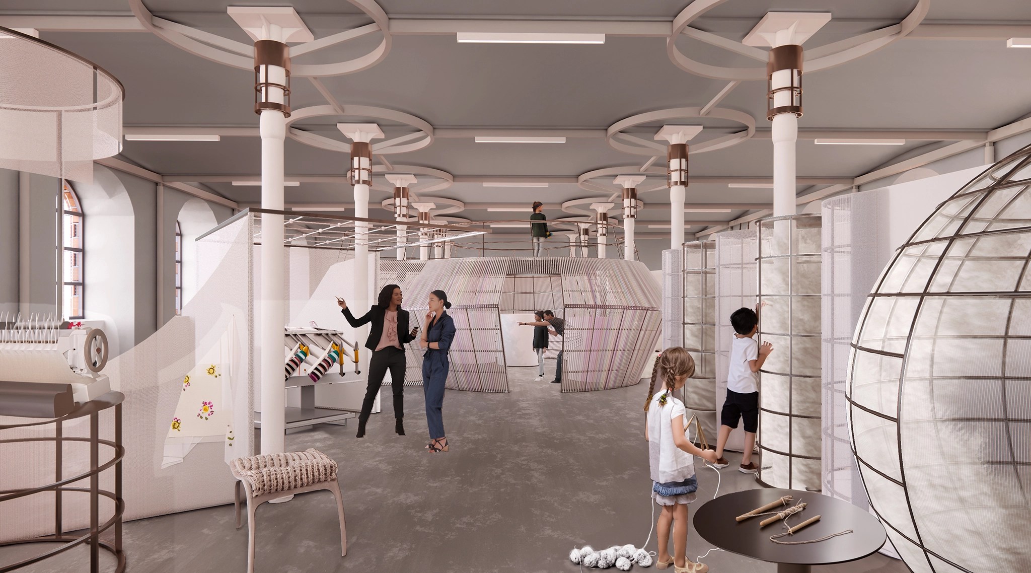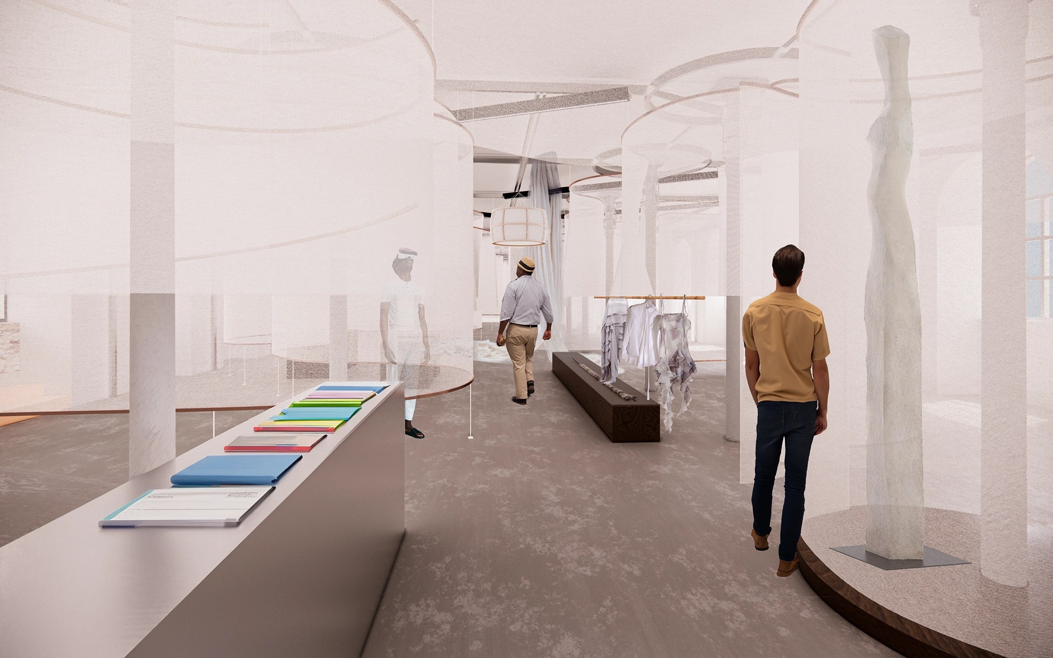 Through meticulous armature interventions, fabric materials are transfigured into an interior architectural system tailored to accommodate specific programs and activities. The cohesiveness of the framework systems ensures a seamless yet dynamic transition of fabrics across various spaces of exhibition, conference, workshop, fostering clear circulations, expressive public gestures, and the collection of diverse educational experiences.