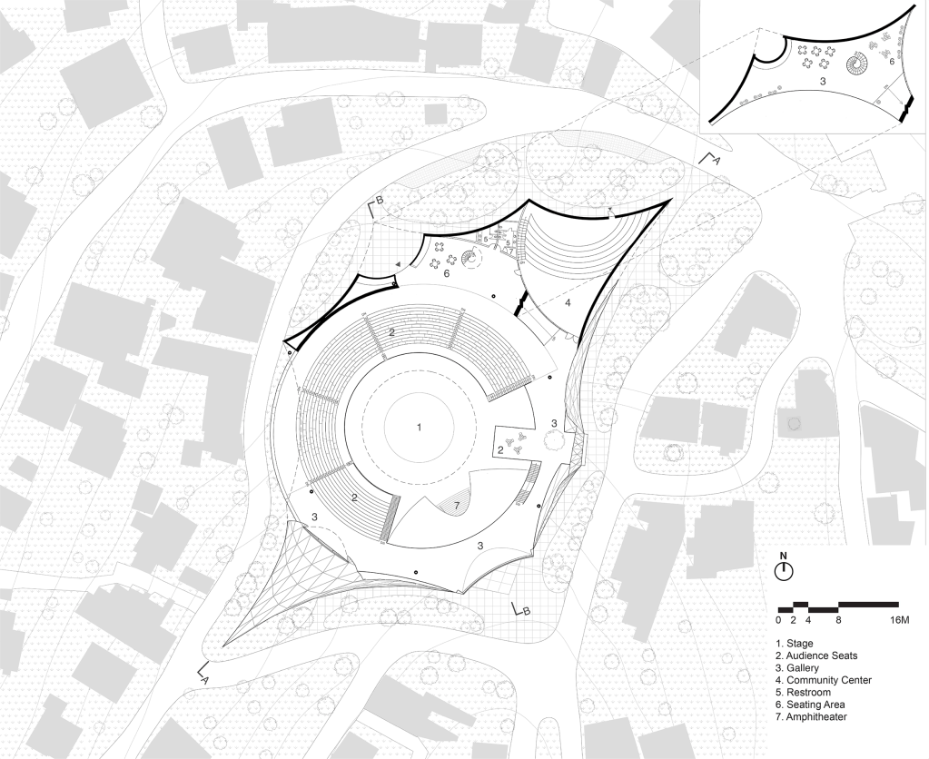 To address the site’s pronounced vertical complexity, a secondary semi-open amphitheatre is introduced at a lower elevation. This new structure establishes a carefully calibrated spatial dialogue with the historic seating positioned above. While the original amphitheatre continues to host formal performances, exhibitions, and ceremonial gatherings, the lower semi-open amphitheatre is intentionally conceived as an informal, accessible civic platform—designed to welcome everyday use beyond scheduled cultural events.